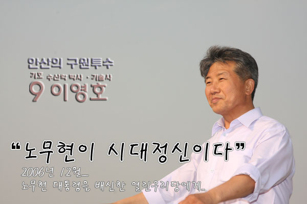 (안산 상록을 )재보궐 선거의 새바람 기호9번 구원투수 이영호입니다. 2009년 10월 20일 | 예전자료-열린마당 안산 상록을 재보궐 선거의 새바람 기호9번 이영호를 국회로 보냅시다. 일잘하는 무소속 이영호 후보를 국회로 보냅시다. 상록을의 지속 가능한 발전 선택은 이영호입니다, 주민들의 현명한 판단을 기대합니다. Facebook Twitter