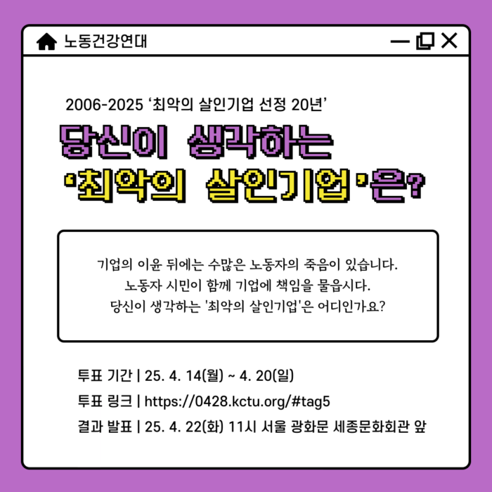 [최악의 살인기업 선정 20주년] ‘시민이 뽑은 최악의 살인기업’에 투표해주세요!