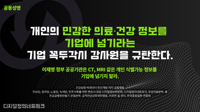 개인의 민감한 의료·건강 정보를 기업에 넘기라는 기업 꼭두각시 감사원을 규탄한다. |